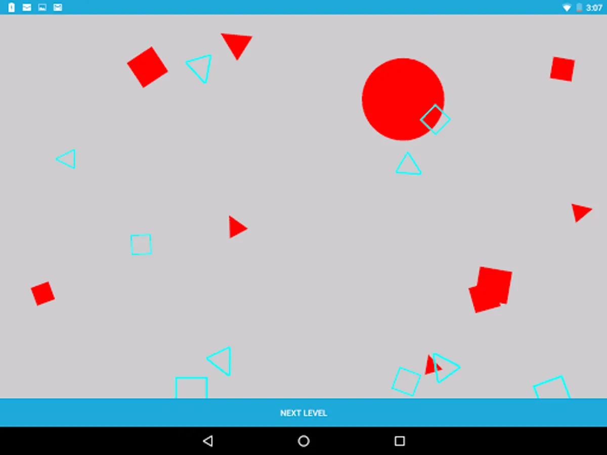 The purpose of the game is to place the full figures inside the outlined figures. Once all the figures are matched, you can progress to the next level, where more complex figures will be shown.