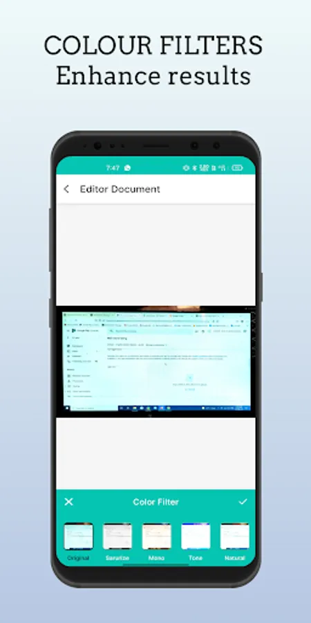 Retouch photo scans and documents from your camera roll. Whether it's a PDF or a photo, you can preview, reorder, crop, rotate, and adjust colors using filters. Digitize your images with a photo scanner and OCR scanner.