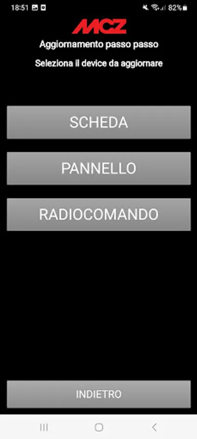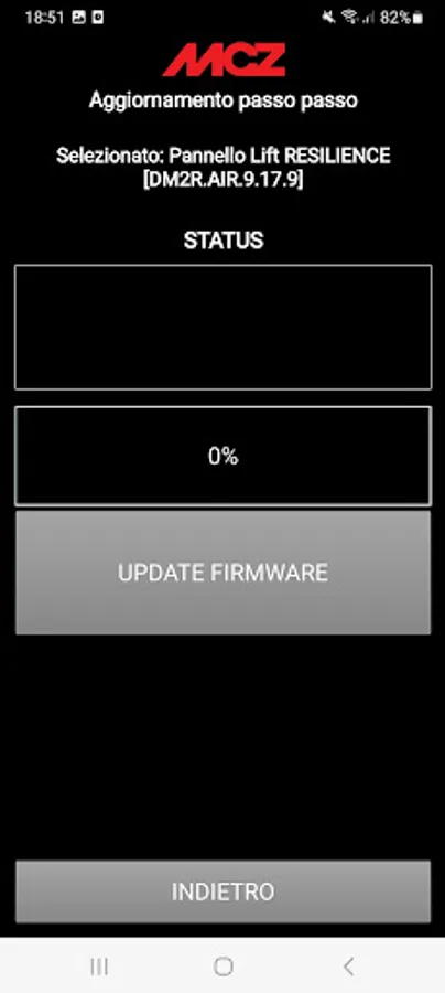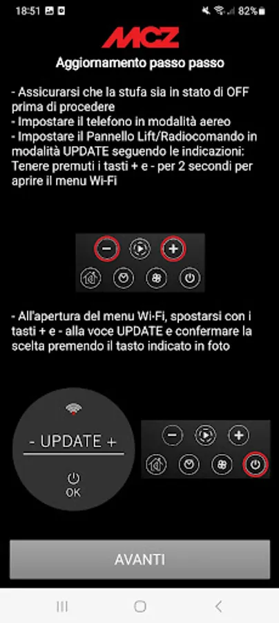 The app makes it possible to update the firmware of MCZ maestro+ stoves by connecting in WiFi mode directly to the stoves, with no need for an Internet connection other than to download the app itself.