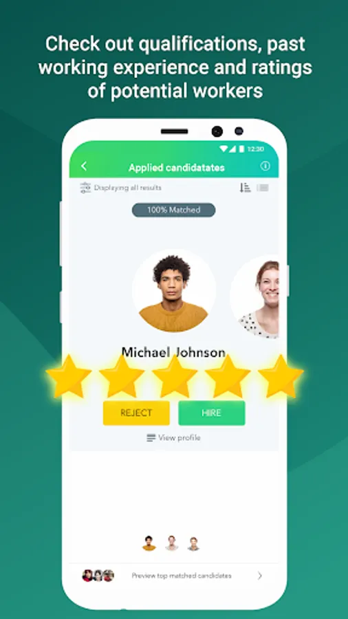 • Choose your part-time staff by checking their profile including certificates, personal profile and rating from past assignments