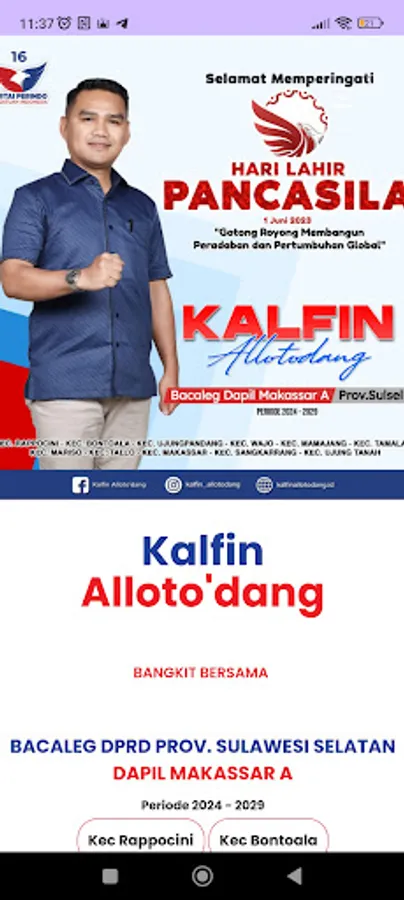 Kalfin AlloTo'dang is a young man who has a high passion in supporting development in South Sulawesi. Kalfin was born in North Toraja, precisely in Pangli on May 7 1983. His father came from Kesu' and his mother came from Pangli. As a child, Kalfin lived with his grandmother in Pangli from the age of 4 to 9 years. At the age of 10, Kalfin returned to live with his mother and father in Ba'tan Kesu'. Since he was a teenager, Kalfin has spent a lot of time playing and socializing in the city of Rantepao. In his life journey, Kalfin is a village youth from Toraja who came to study in Makassar in 2002. He later graduated from college and continued his career as a lecturer at a private university in Makassar. To realize his aspirations and hopes of becoming a useful human being for many people, especially in South Sulawesi, Kalfin is advancing as a legislative candidate for the South Sulawesi Provincial DPRD for the 2024-2029 period through the Perindo party for the Makassar 1 electoral district (A)