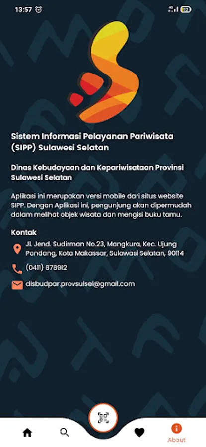 Tourism Service Information System (SIPP) for South Sulawesi Province. This application is a mobile version of the SIPP website. With this application, it will be easier for visitors to view tourist attractions and fill out the guest book by scanning it.