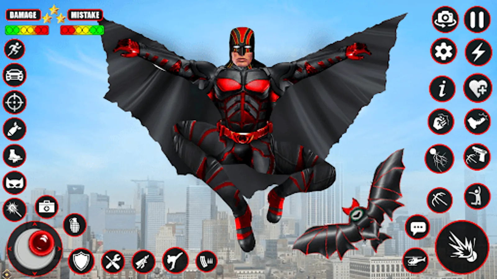 There are three main speed hero modes: dark knights Career mode in dark city hero crime, open world mafia city mode, and exclusive secret super hero vs gangster mode which will open with time as you play the bat man super hero vs gangster and superhero robot game bat game of the dark knight rises. There are a variety of Bat hero robot hero powers such as bat vs superhero Laser Eye Power: The Bat has exclusive dark knight returns powerful heroes grand superhero flying games power of laser eye that destroys the enemy with hero crime laser in rope hero vice. We have improved the batwing powerful heroes graphic quality of the bat hero game as well as improved the open-world grand gangster crime city and dark city environment. You can relate the fly hero city escape hero robot of Bat hero with a Batcave grand superhero robot, powerful heroes can walk and even sprint faster and save people from thugs and get in the fight of city hero and real superheroes vs gangster in fly hero city escape superhero flying games.
