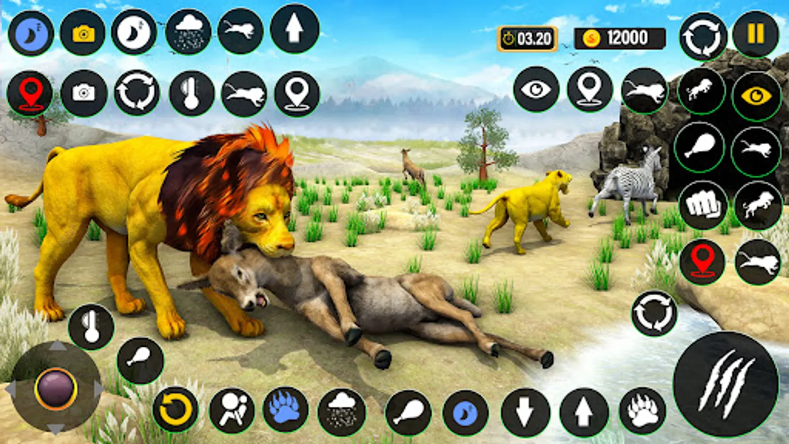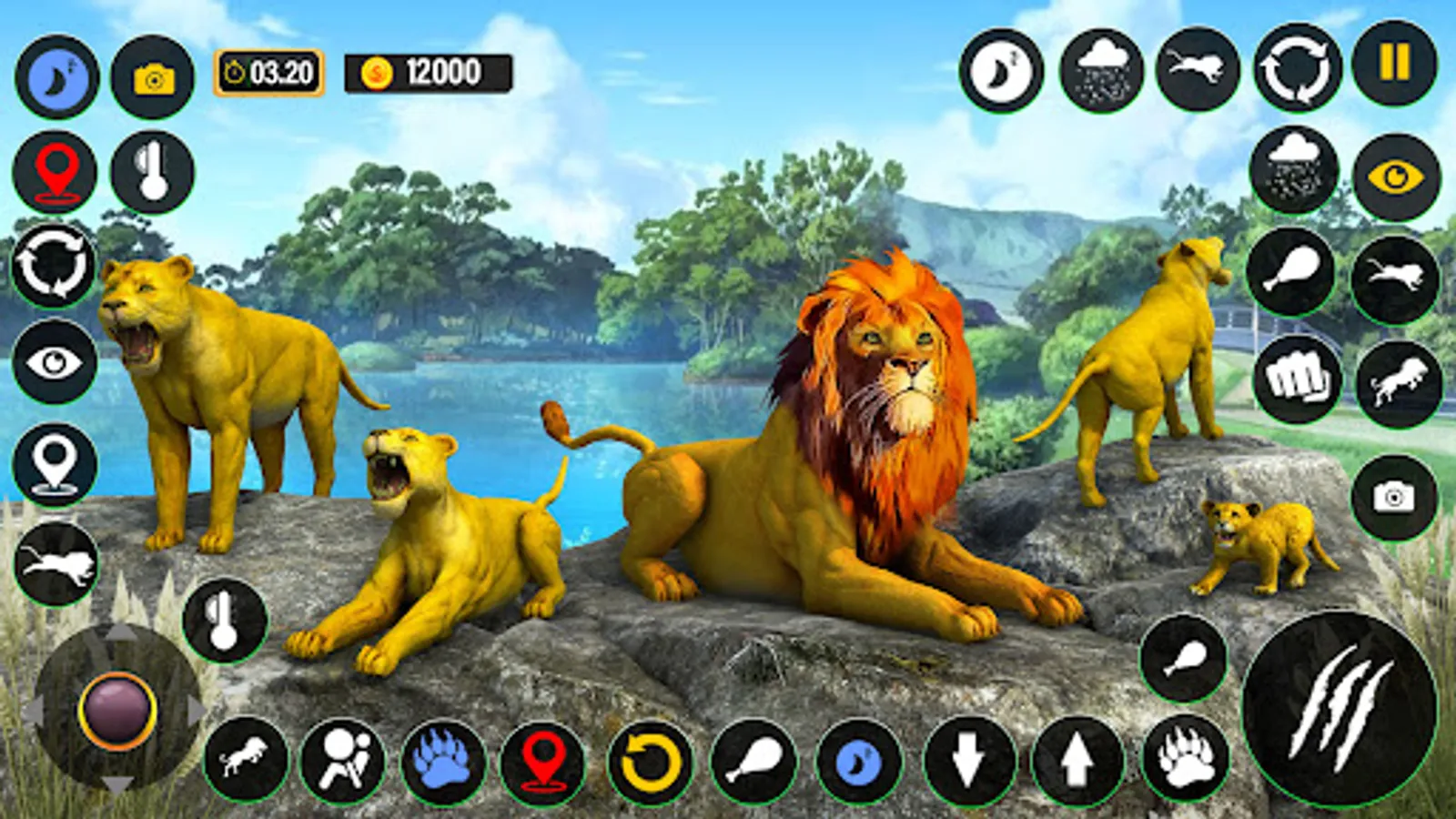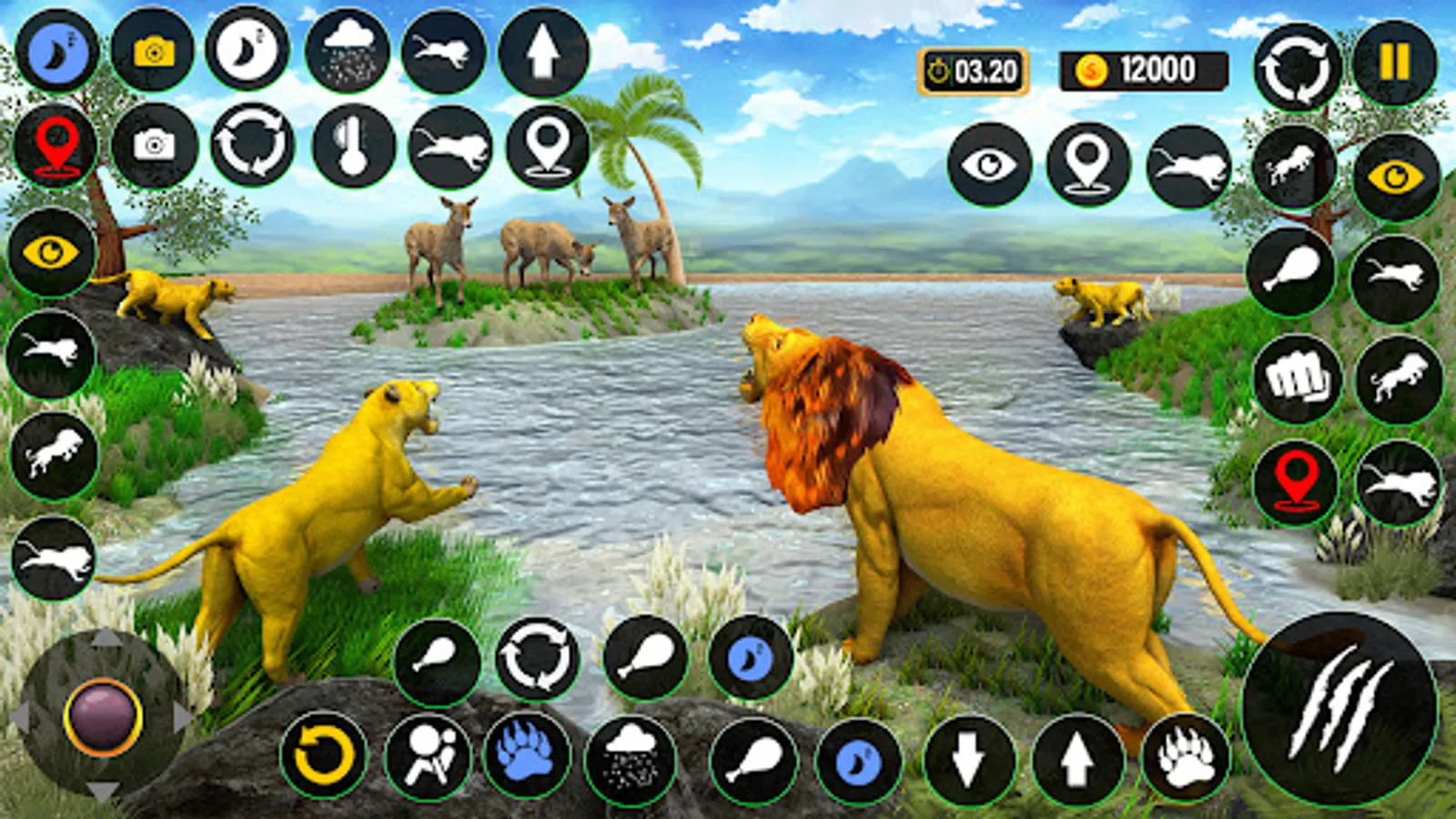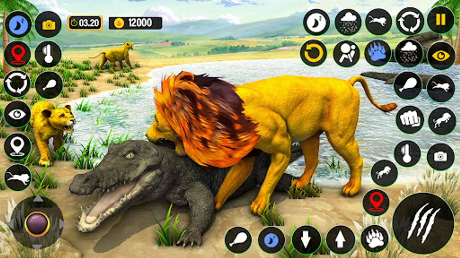 In lion king animal simulator lion games start battle or fight like angry lion king against deadly african jungle wild animals with your lion clan or cubs & save your lion virtual family in vast African jungle lion games: lion king life. Get lion hunting skills & experience with multiple types of lion hunting attacks combos like bite, claw, teeth, pounce & hidden powerful lion attack in lion king animal sim lion games & beware from sudden tiger, puma, anima, kaplan, cougar, panther, crocodile, zebra, elephant, gazelle, hare, hyena, goat, bear, rhino, wolf & other wild animals attack for lion family survival in the wilderness of dark forest as lion king in lion family sim lion games in savanna environment. Do hunting for hunger & drink water for thirst, maintain your health & energy for survival in the wilderness in free lion king animal sim 3d lion games.