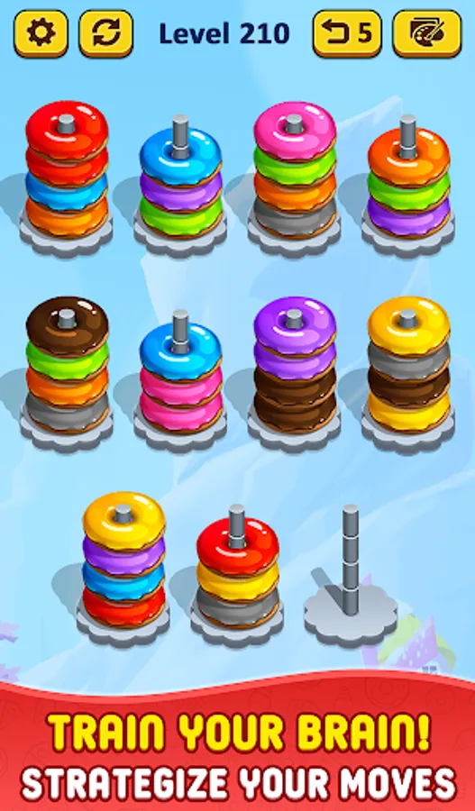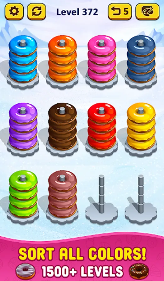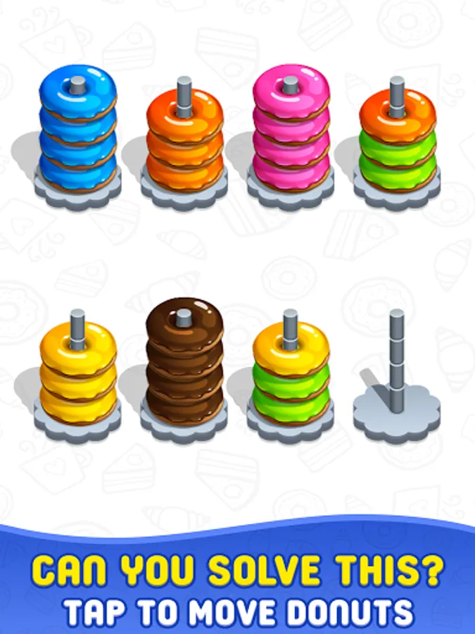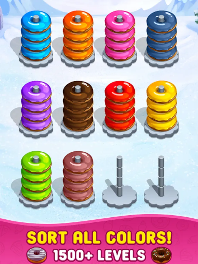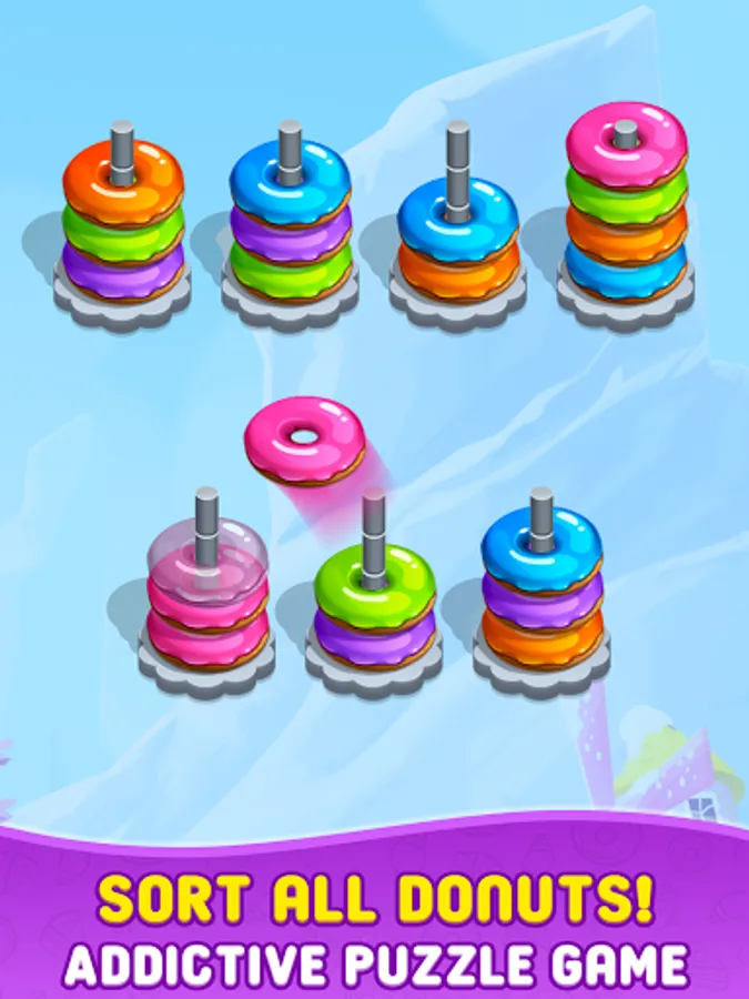 Donut Hoop Stack Puzzle is 3D color sorting puzzle game.