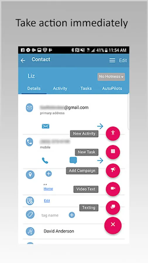 - Contact management: add, edit, and assign drip campaigns to contacts, assign leads, status and hotness levels.