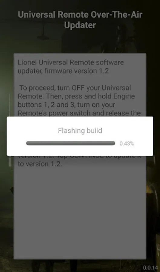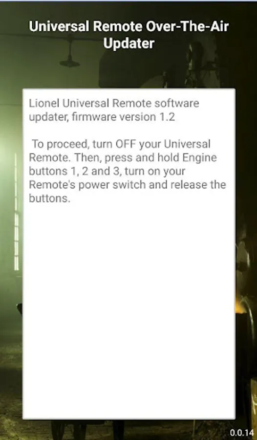 Use this free app to update your Lionel LionChief LC/LC+ Universal Remote Controller (6-83071) to version 1.2. This update enhances remote functionality for operation with all LionChief and LionChief+ products.