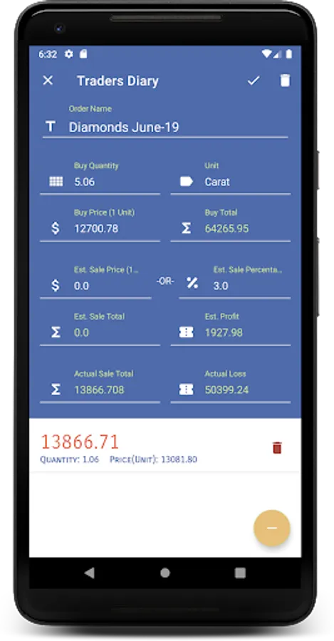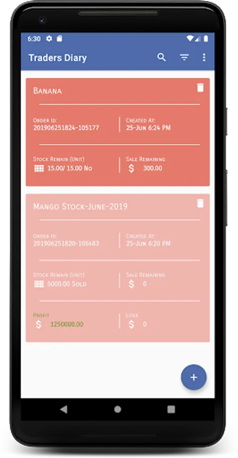 Trader’s diary tracks your purchase(buy), sale, inventory stock of trading like share stocks, food trader, diamond consignments, etc. You have to enter the details of purchase value & sale value or profit percentage so the app will automatically calculate the total sale value with the left stock of that particular stock or order. Also, you can add your sales transaction with the correct value so the app will calculate the exact profit and loss.