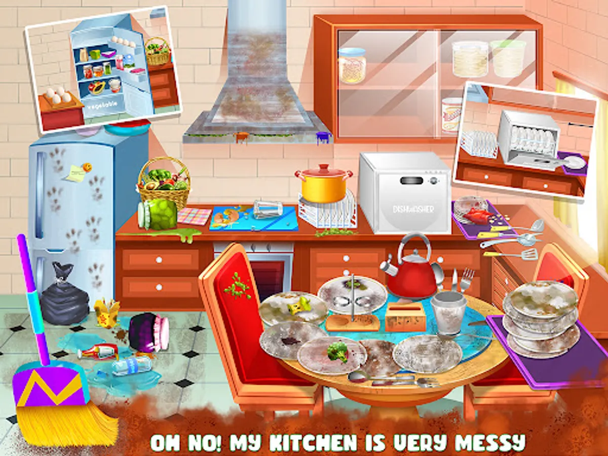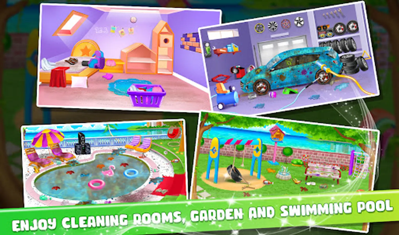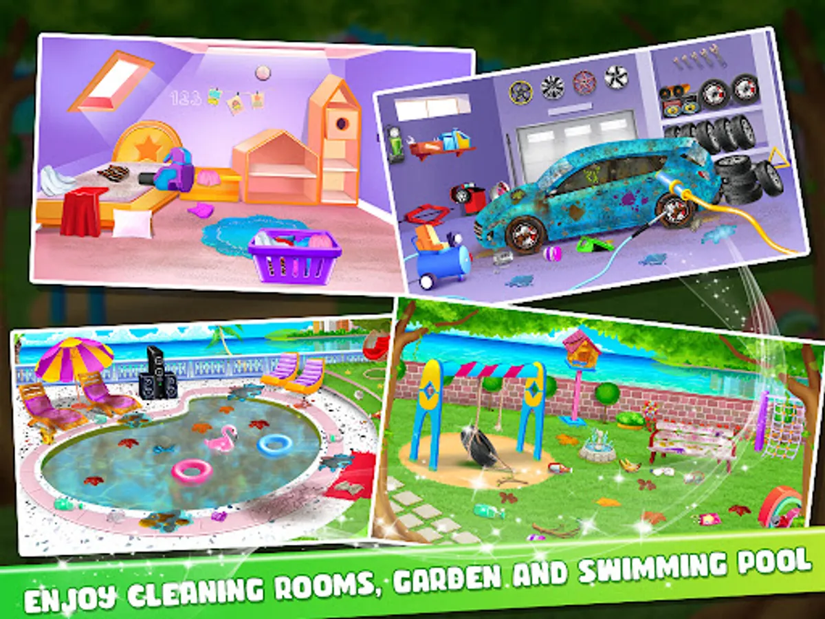 Learn how to clean up your room, do laundry, clean the bathroom and wash the dishes in the kitchen. Take good care of your pet dog by cleaning dog house , wash the car and more, clean swimming pool, garden and many more! The house has variety of places to clean such as....