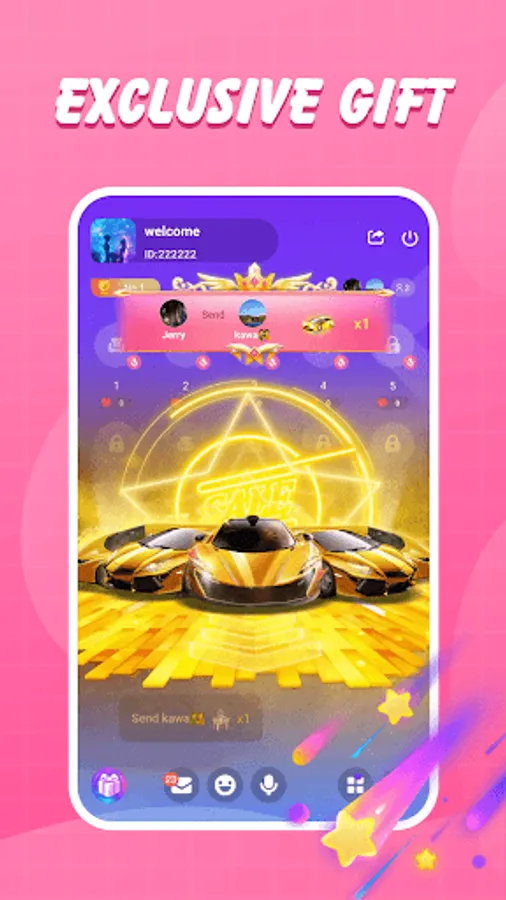 LionsChat has prepared a variety of exquisite and unique gifts for everyone, luxury sports cars, exquisite avatar frames and other decorations to choose from. Send gifts to your new and closest friends to express your emotions while chatting.