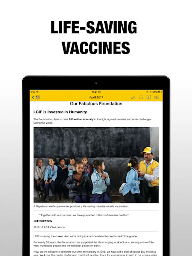 LION Magazine takes you inside the service to see how Lions volunteers are making a real difference in their communities and around the world. Get compelling stories and captivating photography that bring to life the impact of the largest service organization on earth. Both locally and globally, Lions are confronting some of the biggest challenges facing humanity—hunger, vision health, the environment, pediatric cancer and diabetes—to make the world a better place for all. Find out how in LION Magazine.