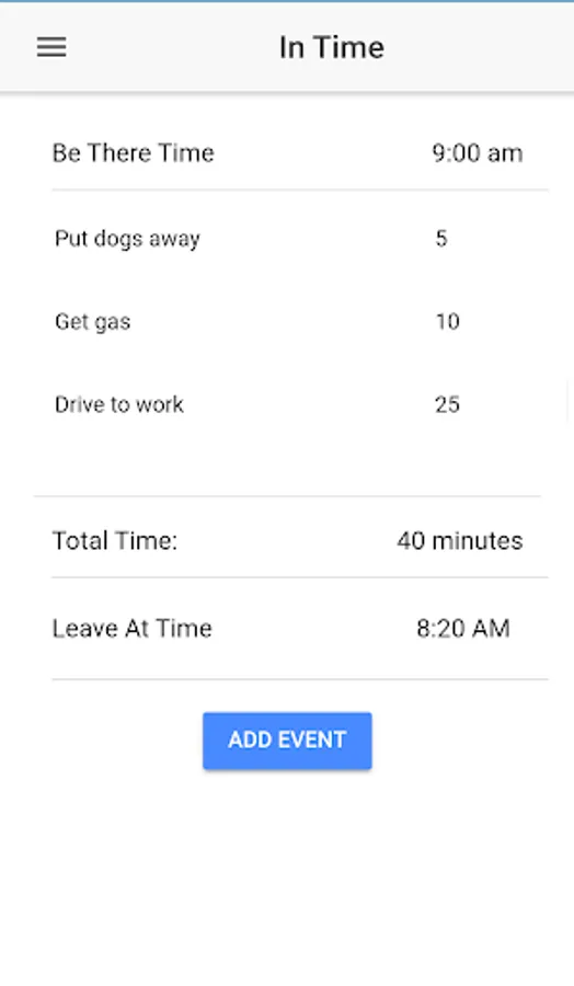 In Time helps you figure out what time to leave for an event or activity when you have a few other things to do first.