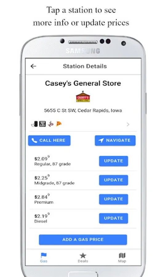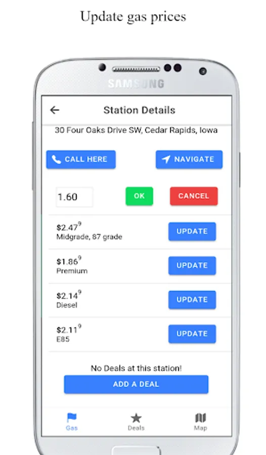 5) When viewing a Station, easily add/update gas prices as well as view the list of deals at the station (or add a new one)