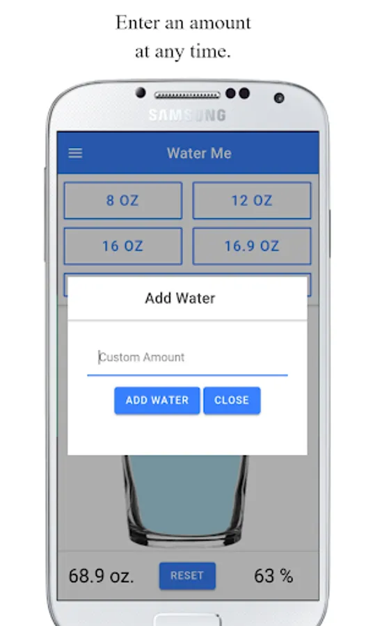 * There are 4 quick entry buttons to add 8/16/20/24 ounces, or you can enter a custom amount.