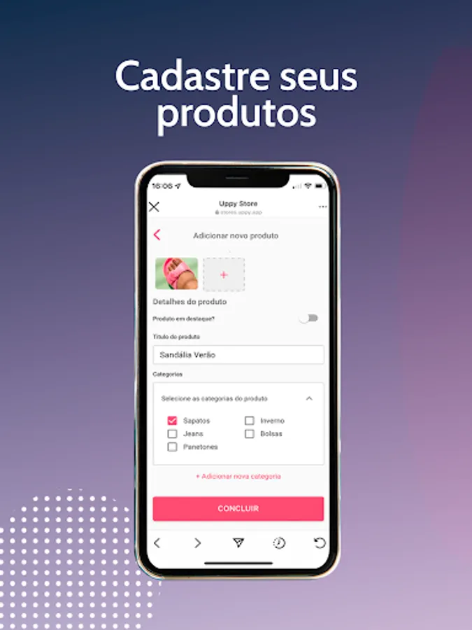 To get started, just register, customize your store, register your products and that's it! Simple, easy and completely free.