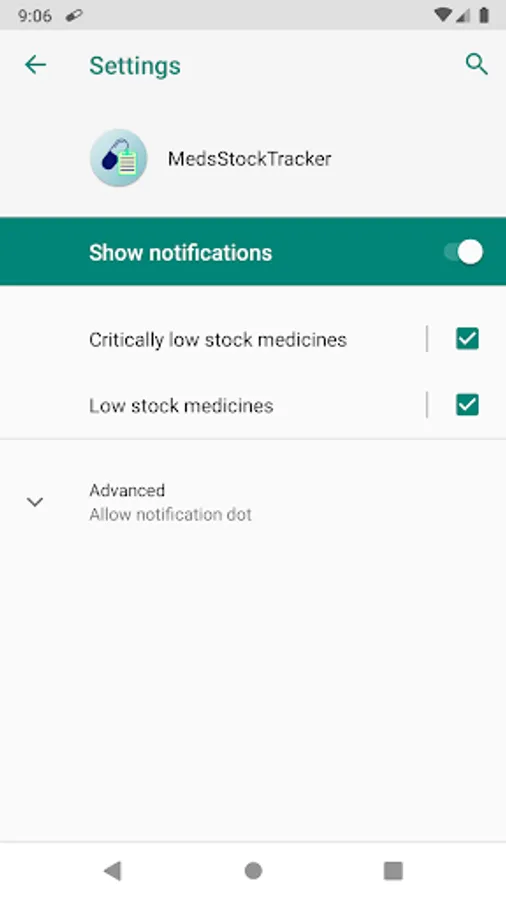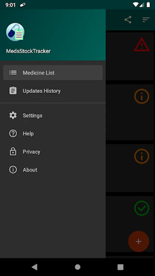 MedsStockTracker tracks your medicines stock. It doesn't tell you when you should take your medicines, how much to take, etc. It only tells you when your medicine stock is going to run out, and it alerts you when it is time to re-stock. MedsStockTracker is intended to be used only with medicines that are taken regularly, such as medicines for chronic conditions, multivitamin, etc. It cannot be used with medicines that are taken irregularly such as medicines for headache relief that are only taken when needed.