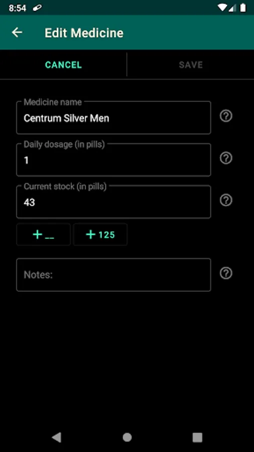 For each medicine that you're tracking, you tell MedsStockTracker the daily dosage, and the amount available at that time. Every time you re-stock, you update the app so it can track your inventory.