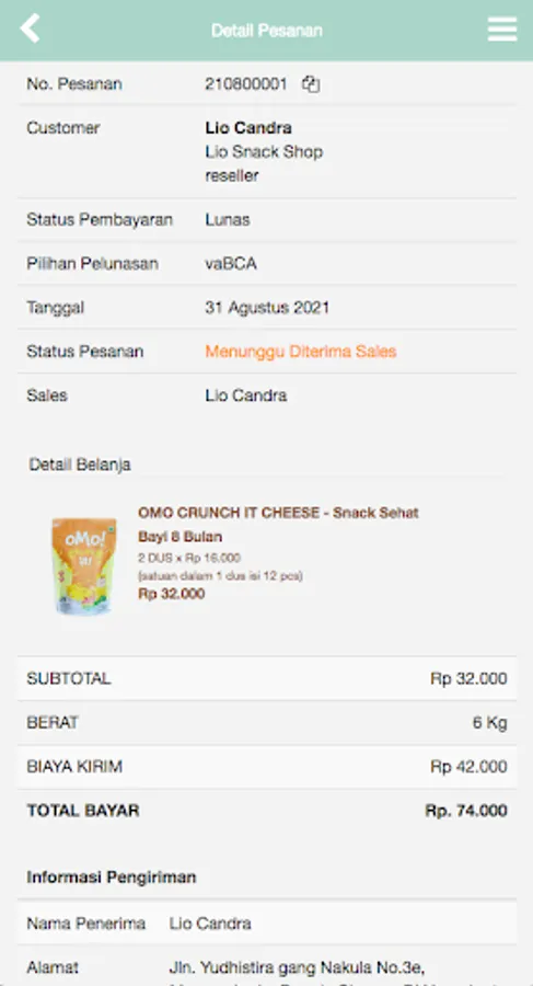 OMO Sales, merupakan aplikasi penerima pesanan OMO Healty Snack, dengan aplikasi ini membantu dalam memproses pesanan dengan cepat dan mudah