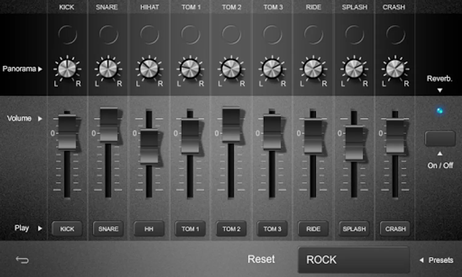 - A set of presets of different musical styles, allowing you to quickly display the options playing drum kit;