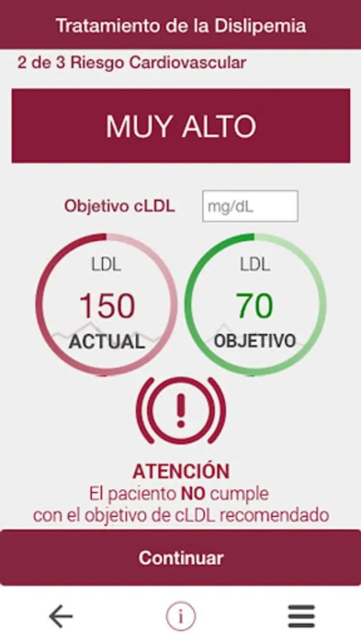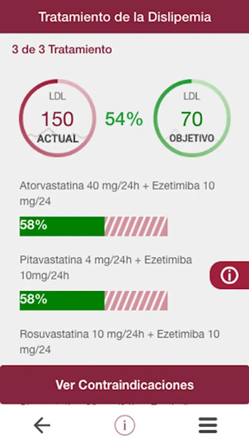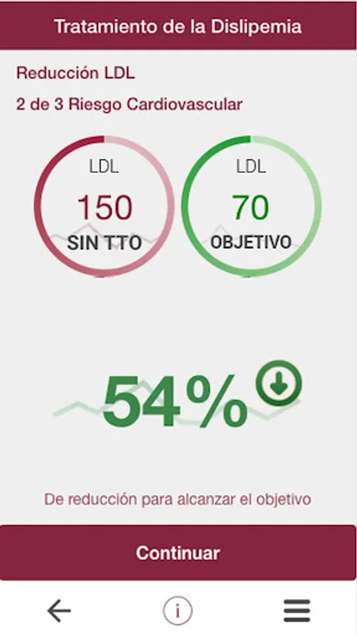 Support for the health professional to facilitate decision-making on the appropriate treatment based on the profile of each patient. Based on the patient's clinical CV risk and extrapolates what should be the target LDL-C figure, which is the necessary reduction to reach that figure and what treatment options there, considering the contraindications and interactions present.