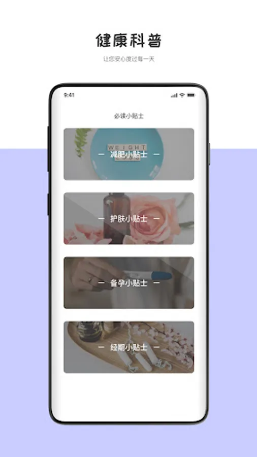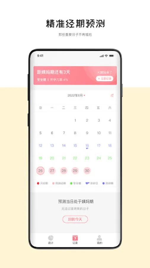 Open the APP software every day to check the menstrual stage you are in: menstrual period, fertile period, safe period or ovulation day. In order to let more women predict their own situation in advance, Jingqibao has added a humanized design, and you will get rewards when you set the menstrual period. Develop good living habits and hope that users will be healthier and more calm.