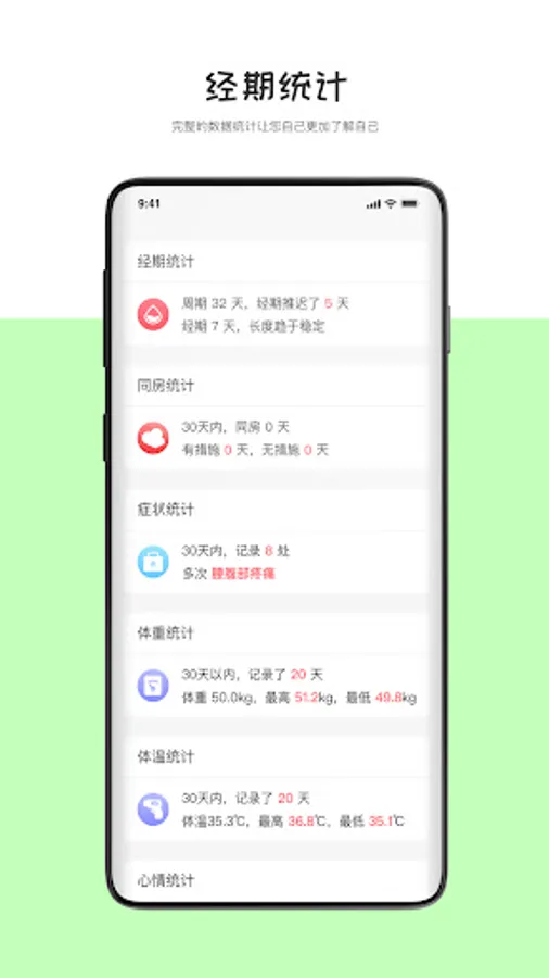 Personal health housekeeper for girls, records, forecasts, reminders, everything is available, so that you can avoid the embarrassment of forgetting your menstrual period, record your daily mood and health details, help you develop good living habits, and let you know your physical condition at any time .