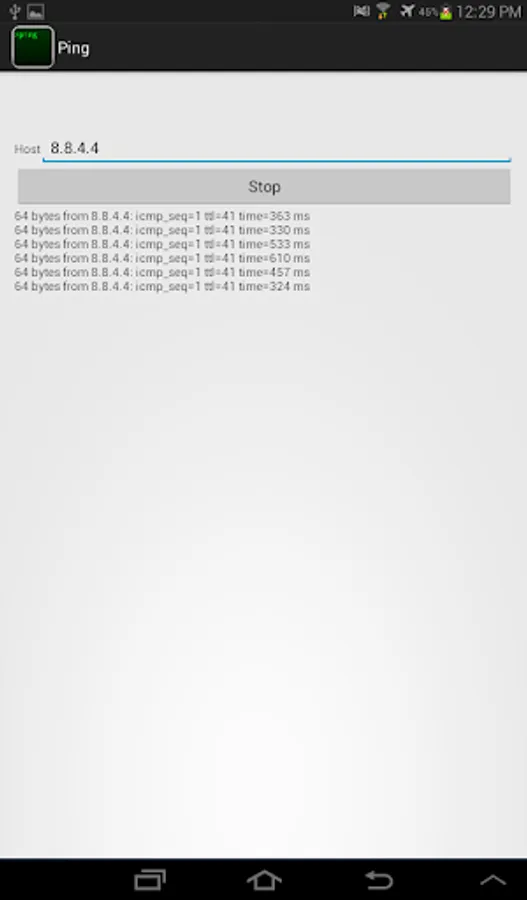 This app is a simple ping for android. We tried to keep it as simple as possible. This tool can be used to determine if your device is connected to the internet.