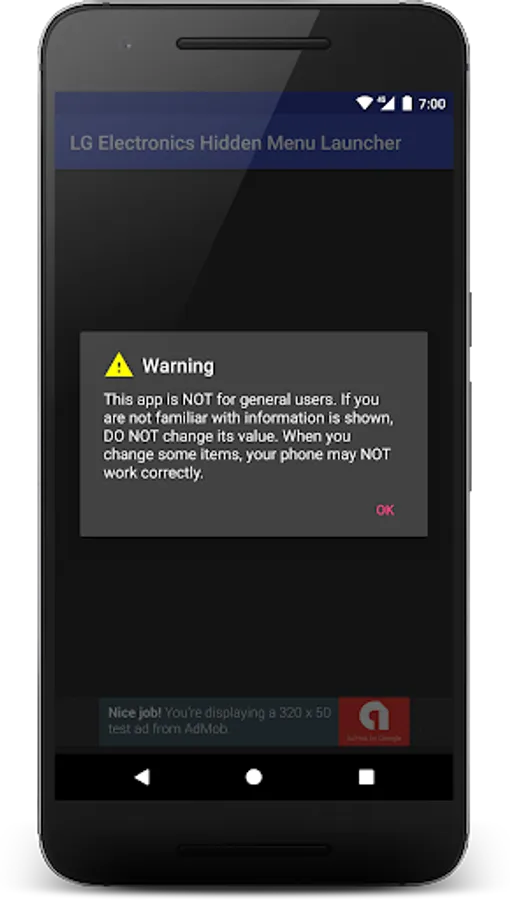 It is an app that can run hidden menu hidden on LG Android phone regardless of carrier regardless of secret code.