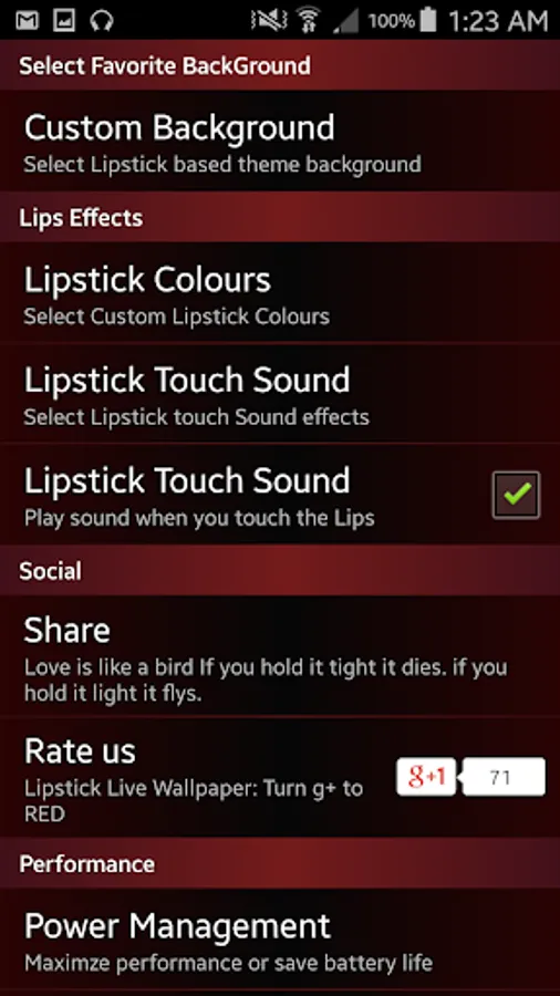 In this application you can find a lot of pictures in HD and full of color! If you like Red Lips , Woman , lipstick ... You will enjoy this app.