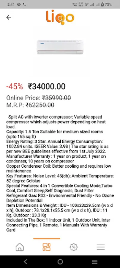 Liqo - India’s first and biggest open box electronics outlet brings the best deals on branded electronics like Refrigerators, Microwaves, ACs, Washing Machines, LEDs, Speakers, Chimneys, Coolers, Geysers and the likes. Download the app and never miss another ‘online se bhi sasti’ deal on branded electronics. Once you have inquired about the products that you want, visit your nearest showroom to get a ‘touch and feel’ experience of the product. Our stores are located at Panchkula, Solan, Chandigarh, Patiala, Kharar, Kolkata and Bangalore. While on the app, choose the product category that you want, choose the specifications, inquire about your favorite deal and then visit the showroom to experience price, quality and service at its best. Not only are our prices the best that the market has to offer, but we offer excellent quality of products and excellent post sales service. We are here to give an ‘Upgrade’ to the dreams of every Indian family who wants to own the best in electronics. Visit your nearest showroom and shop from Liqo today!