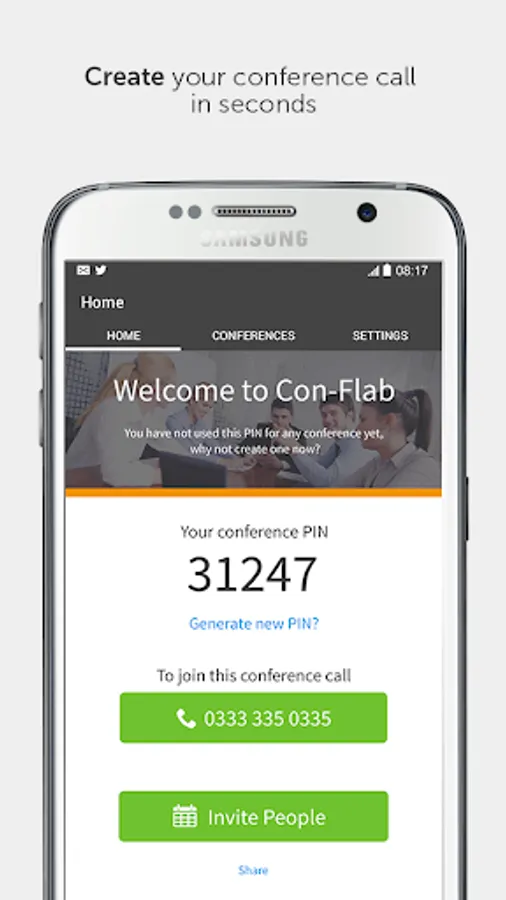 CON-FLAB is the easy way to create, manage and join your conference calls. Conferences can be accessed from Landlines, Mobile phones, internationally or directly from the app. Invite participants from your contacts via SMS and email. All conferences are recorded automatically and made available to download straight to your Android device in MP3 format or via the web site. CON-FLAB is the indispensable conferencing tool for anyone wishing to communicate smarter as part of a group.