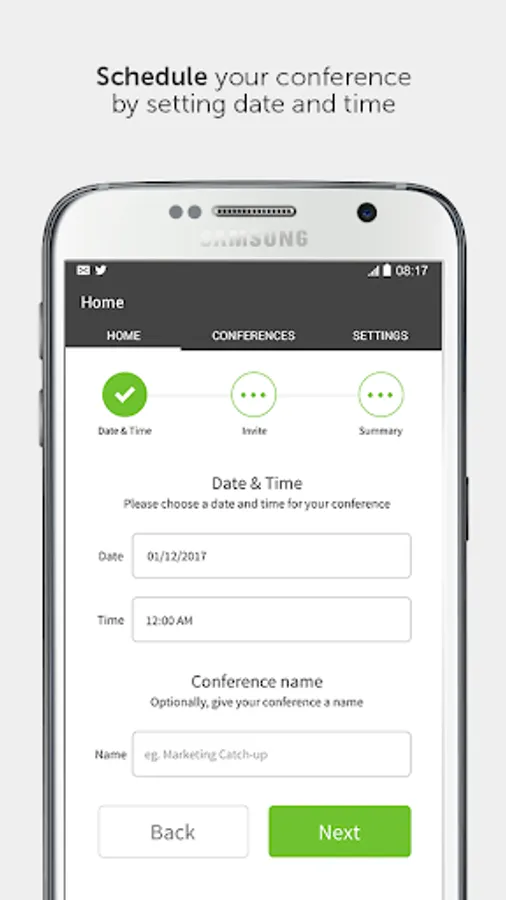 - The system recognises calls from your Android device, allowing direct access to the conference