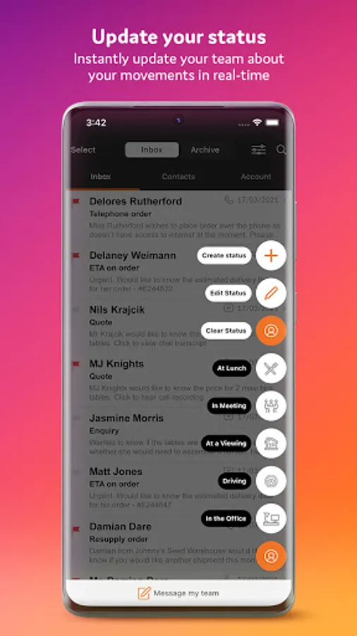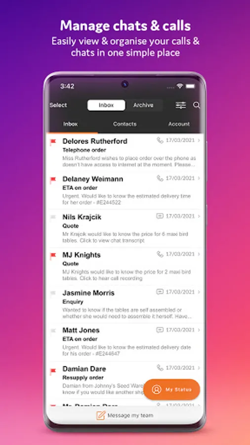 When we receive a call, our App will push an alert to your mobile phone every time you get a call. You can then either ring your caller back or email them directly from your phone.