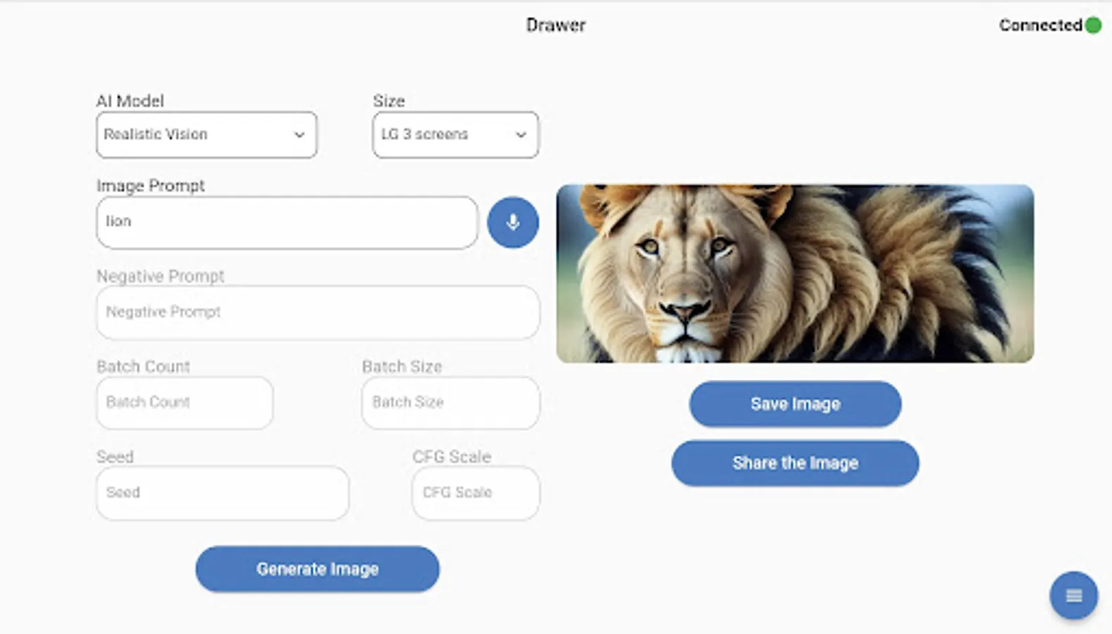 The LiquidArt AI is a mobile application developed in Flutter that allows users to generate images using a text or an audio to text prompt and a selection of APIs, and show them on a multi-screen system for displaying information. The application creates a server to connect to the Liquid Galaxy system to show the images on the screen.