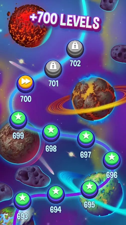 A game FAST and EASY to understand, but hard to dominate, with DIFFERENT and FUN challenges. Go across the galaxy through more than 700 LEVELS (NEW LEVELS EACH WEEK).