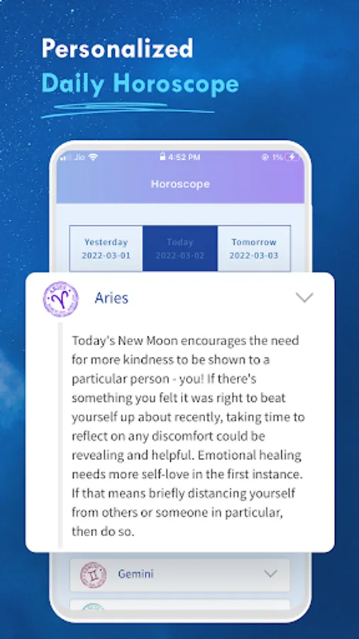 🌓 Astrology readings and personalized follow-up questions offer advice on your love life, financial future and more.