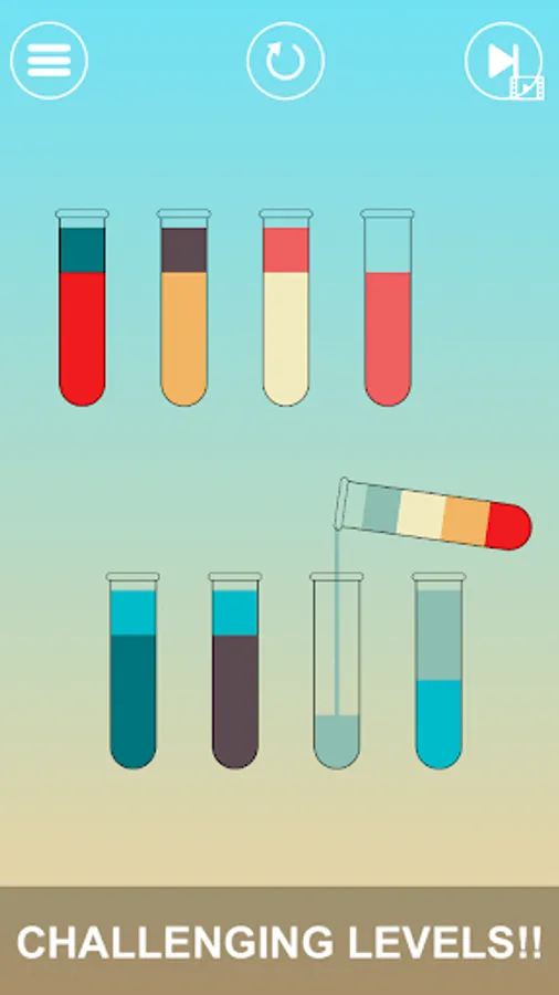 Welcome to Water Color Sort, a captivating puzzle game designed to test your problem-solving skills and provide a relaxing experience. Dive into the vibrant world of colors and engage in a meditative journey that will challenge and entertain you for hours on end. Unleash your creativity, train your brain, and immerse yourself in the soothing atmosphere of Water Color Sort!