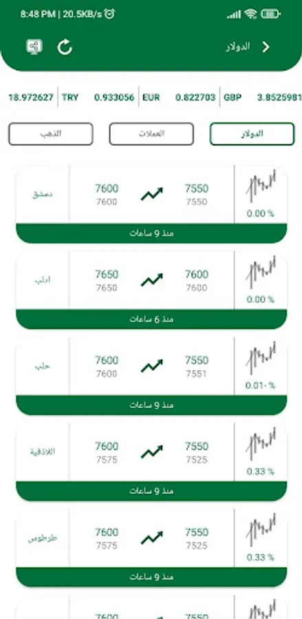An application to follow the exchange rates of the Turkish and Syrian lira, gold, international currencies and market forecasts