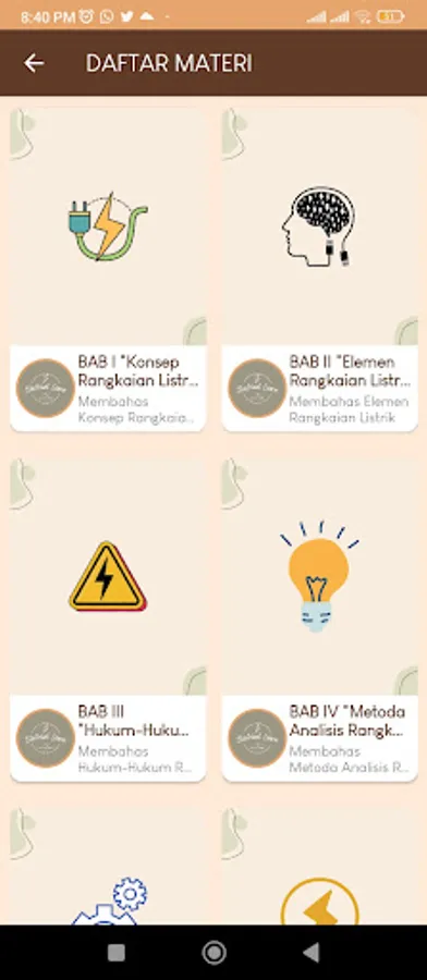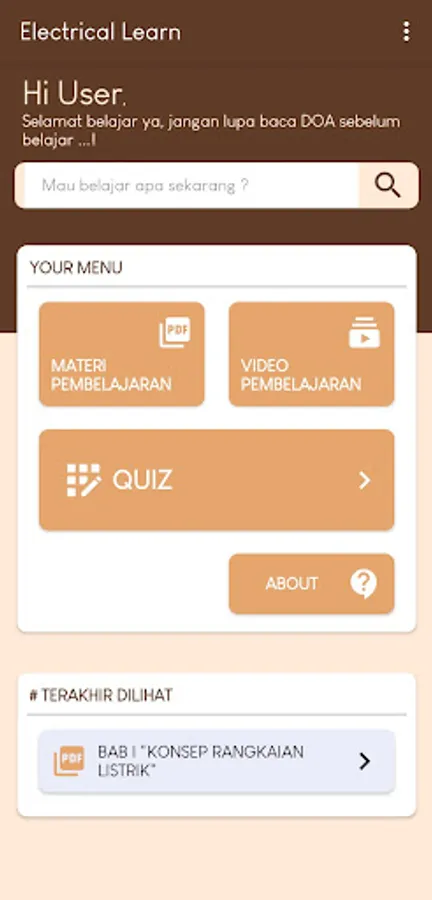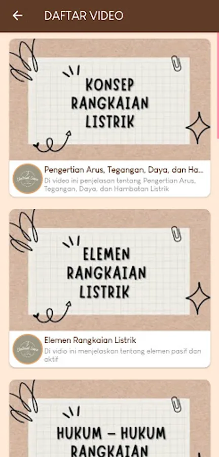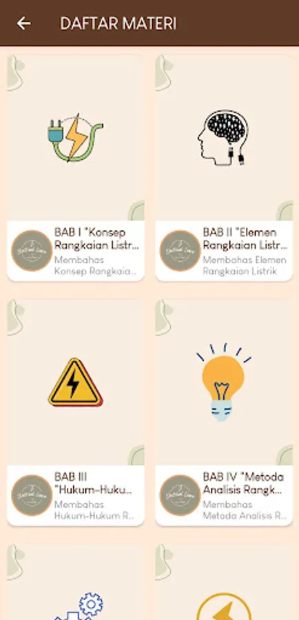 Electrical Learn is a learning application which contains learning materials, learning videos, and quizzes (practice questions). Electrical Learn material in this application will always be upgraded so you always get the latest materials. Electrical Learn has an attractive display of material, learning videos with animated displays and also contains quizzes. This learning application was made to complete the final assignment, in the Electrical Engineering Education Study Program, Ganesha University of Education