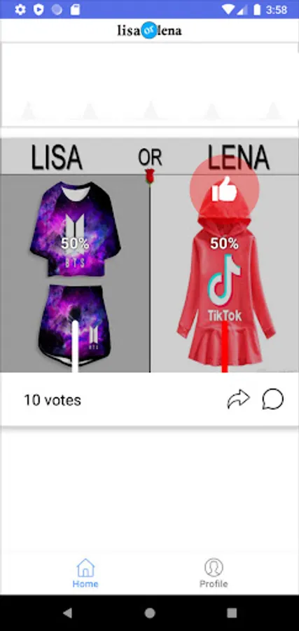 Lisa Or Lena is a social entertainment quiz game where you can compare anything, and you can play with friends and family.