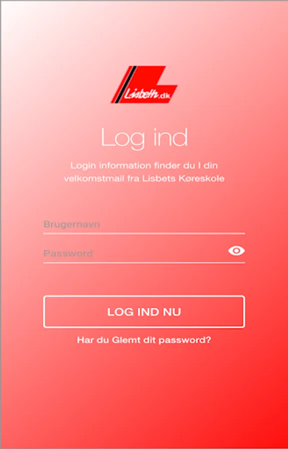 Login information to the app will appear in the welcome email you receive after registering at lisbeth.dk