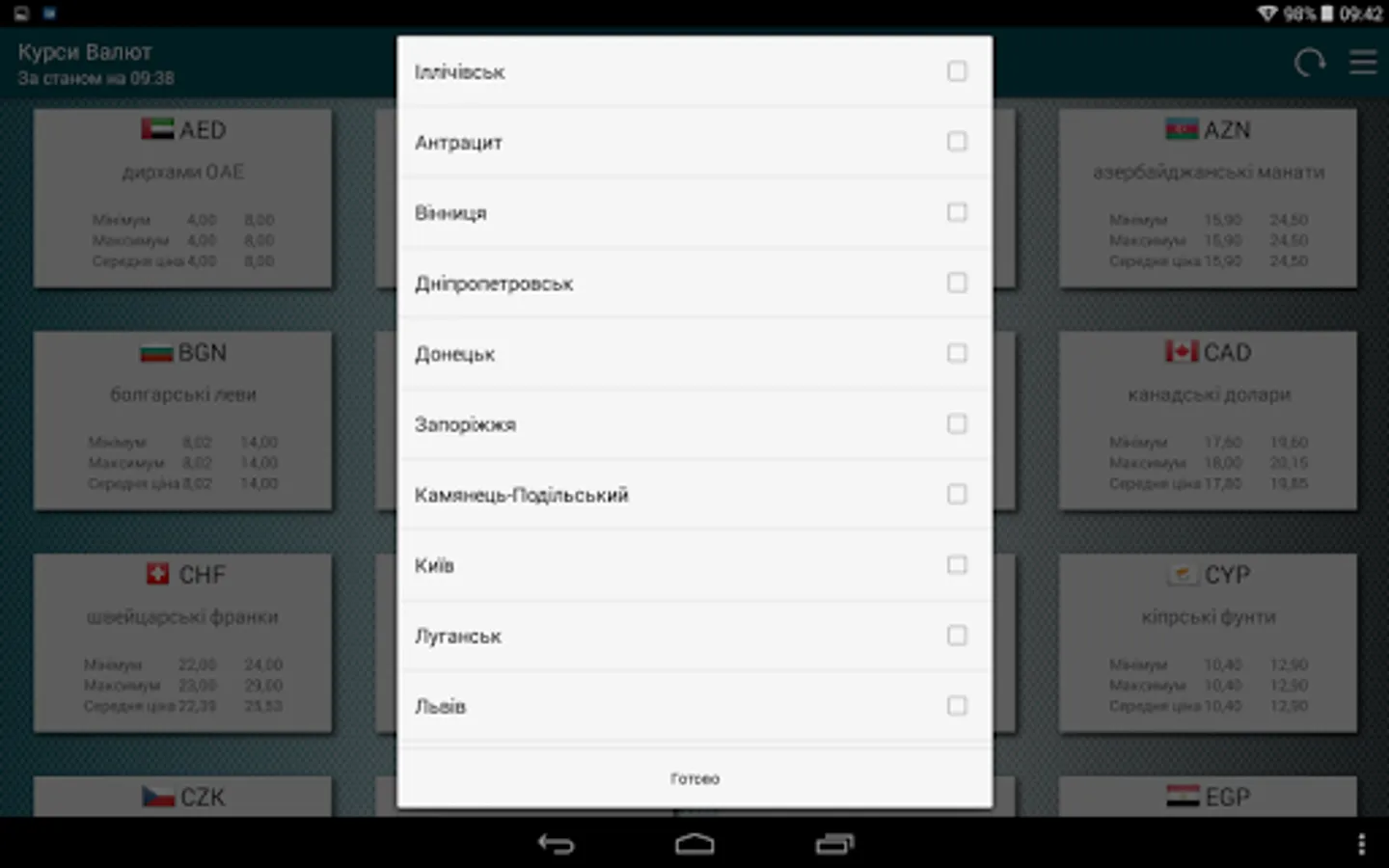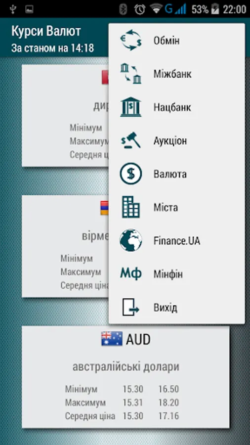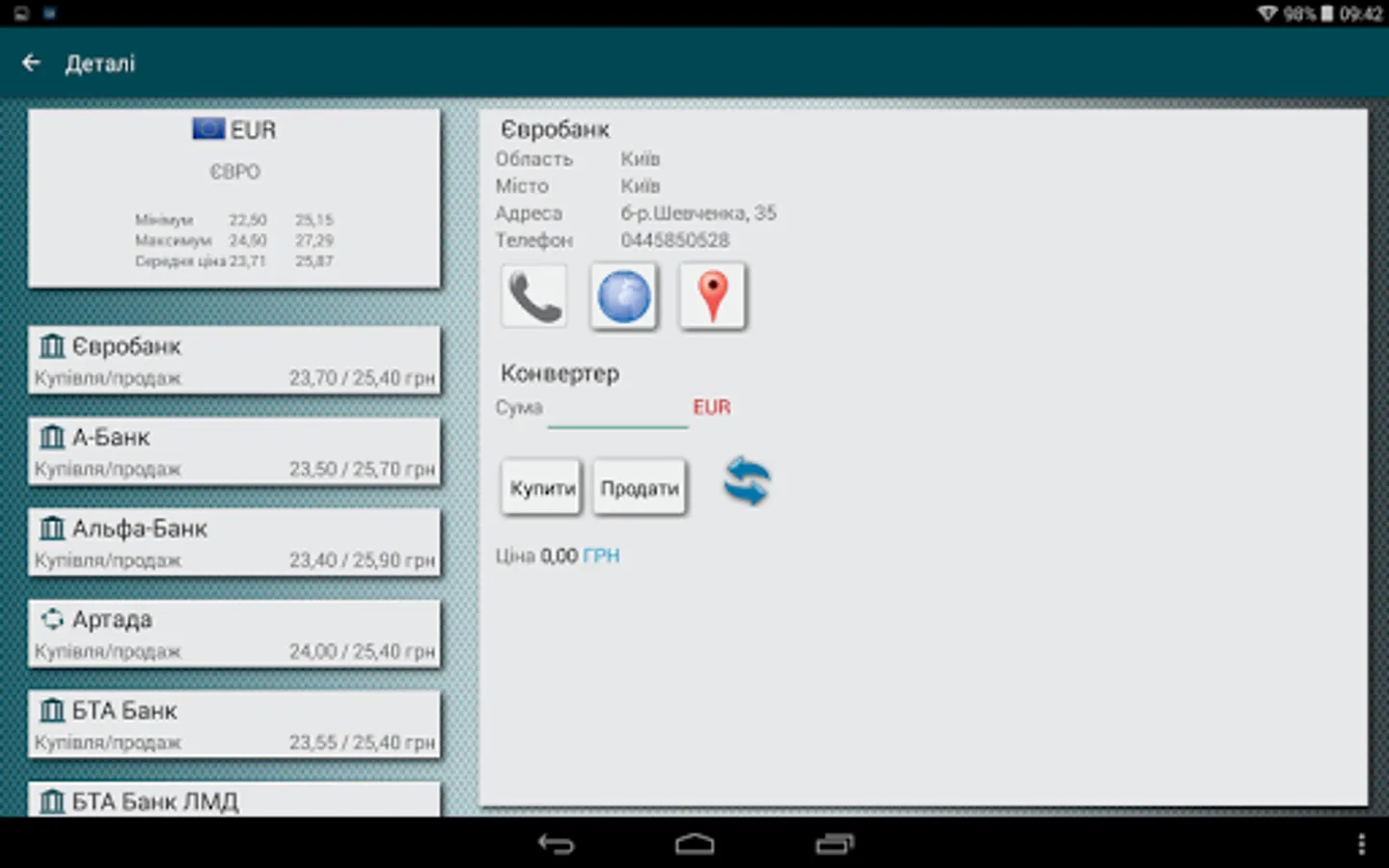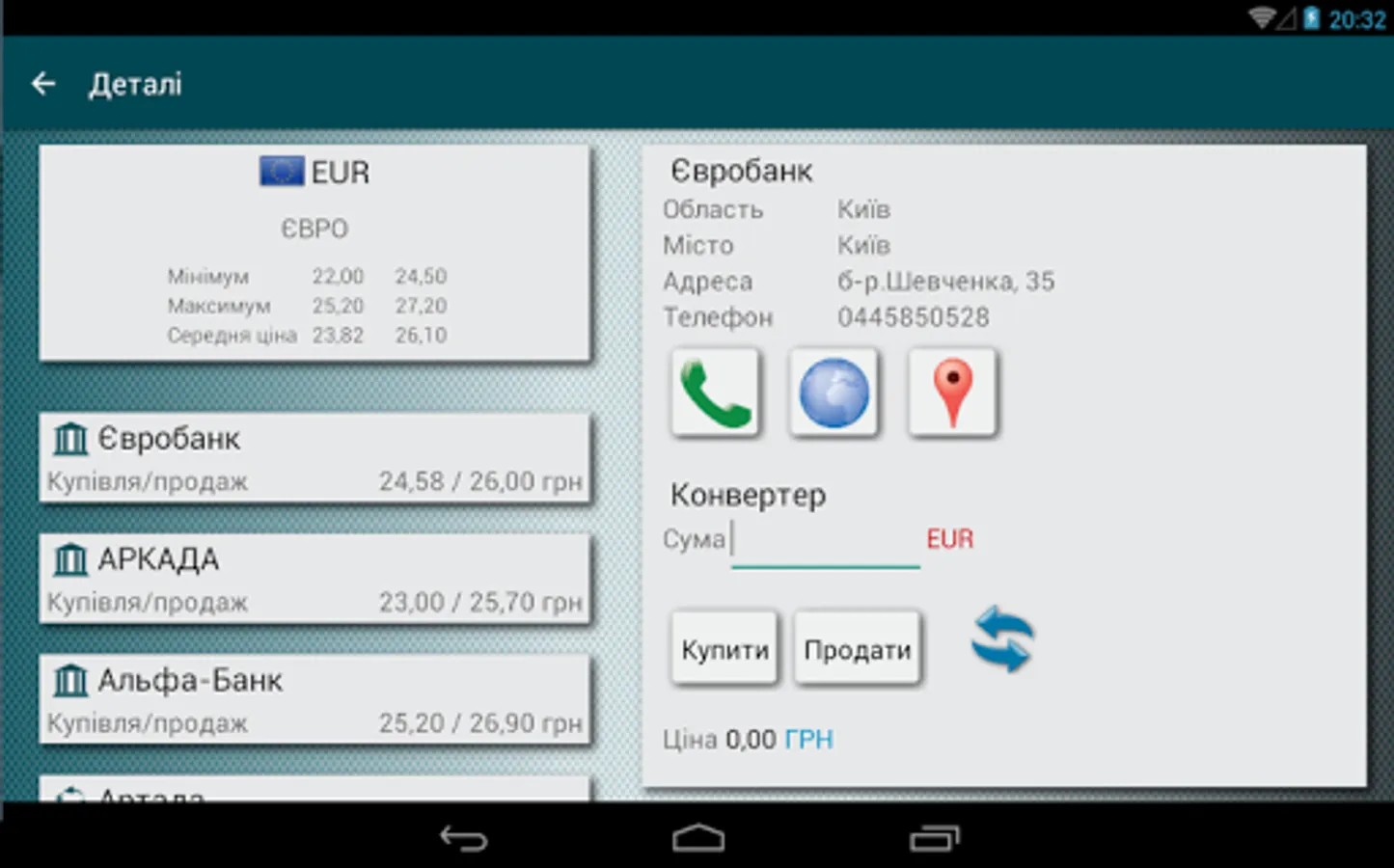 With Rate of exchange UA You can find out about the availability and cost more than 40 currencies in banks and exchange offices in many cities of Ukraine, to convert from a national into foreign currency and vice versa. Also available to you contacts and coordinates Bank / Stand.