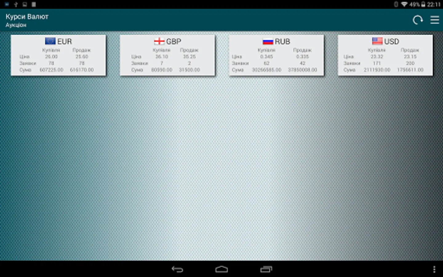 We as developers Rate of exchange UA, can not guarantee the correctness and accuracy of the information received. Remember that weekend, most banks do not work and does not provide information about the courses in full because the data can be displayed less or may not be available.