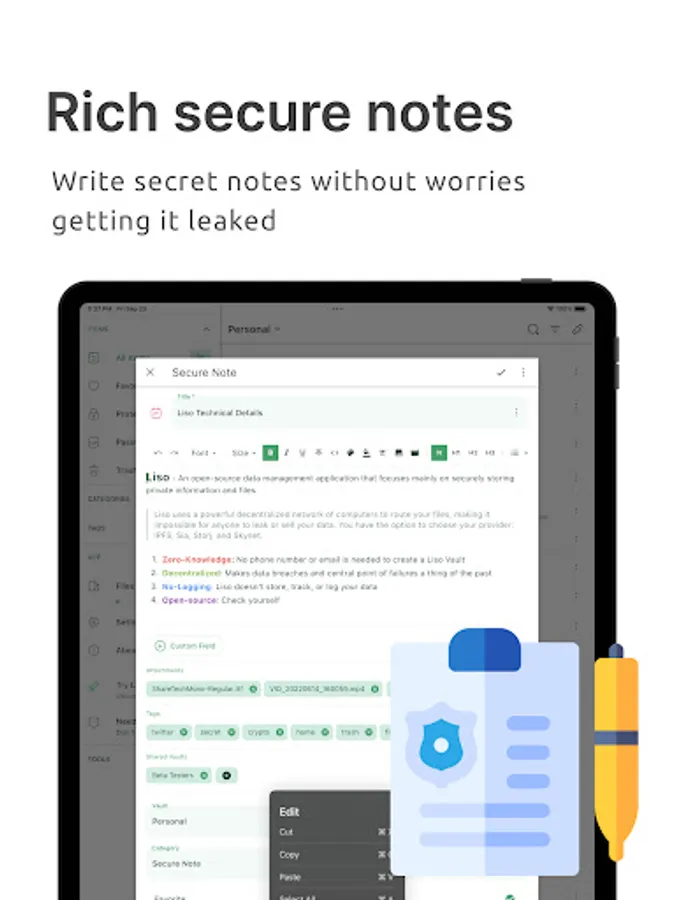 Safeguard your valuable data from prying eyes with utmost confidence. Discover Liso's secure data vault, an exceptional solution designed to protect your passwords, notes, photos, videos, documents, and all other private information from unwanted individuals, hackers, and data breaches. Liso's comprehensive privacy toolbox offers unparalleled security, remarkable simplicity, and a completely ad-free experience.