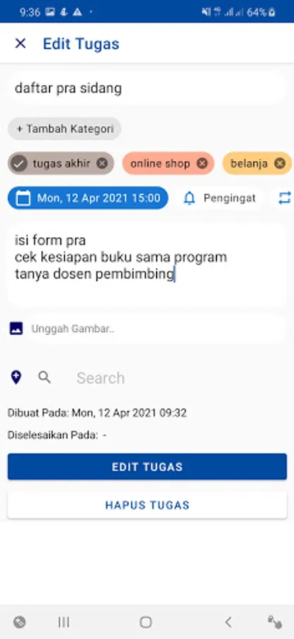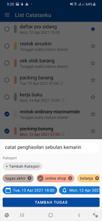 Mencatat dan menampilkan tugas dengan beberapa fitur yang memudahkan pengguna