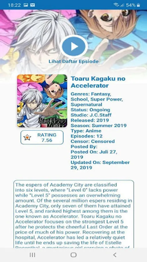 Vidanime is a free application for watching Anime Videos on your Android device. Available Action, Adventure, Comedy, Horror and more. All Indonesian-Subtitled Videos and Updates every day.