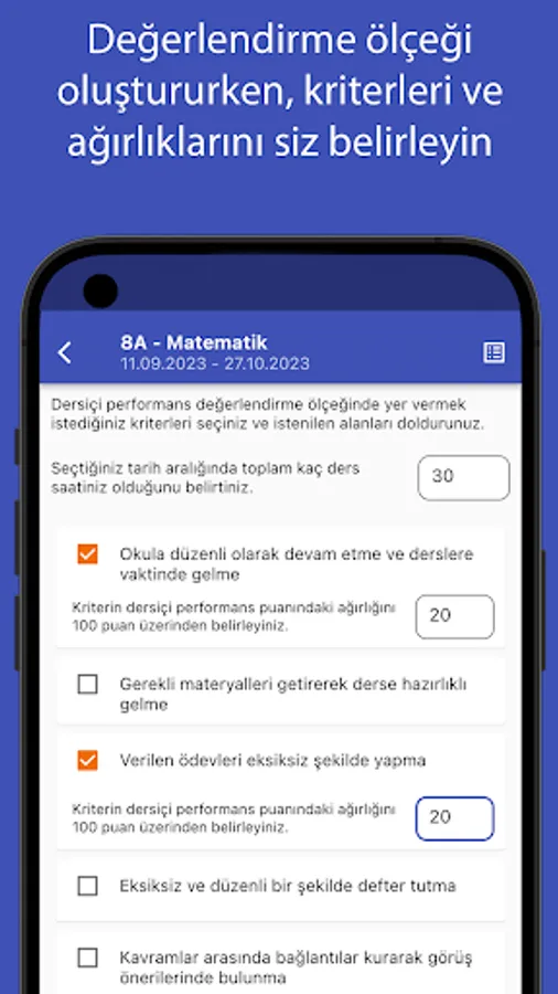 1. It has a flexible design that can respond to different preferences and usage scenarios. You can use the application to store only in-class performance data and to create an in-class performance evaluation scale with these data; If you want, you can also use it to share announcements, assignments and in-class performance data with your parents.