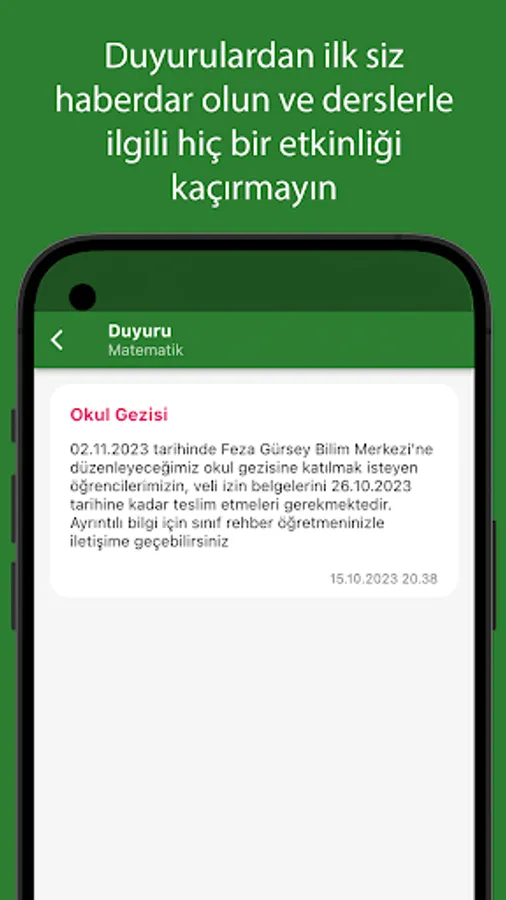 3. It has a simple and useful design. After installing the application, you can save your student and lessons with the sharing information that your teachers will give; You can see in-class performance data, assignments, and announcements about your child.
