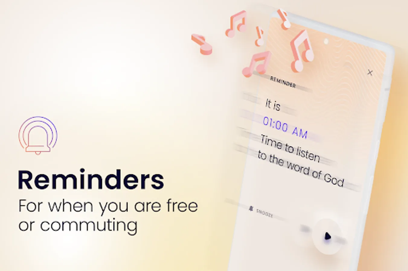 Bible360 will remind you to listen to your Holy Bible everyday, morning and evening. It is a five day listening plan per week. This means, if you fall behind, you have Saturday and Sunday to catch up.