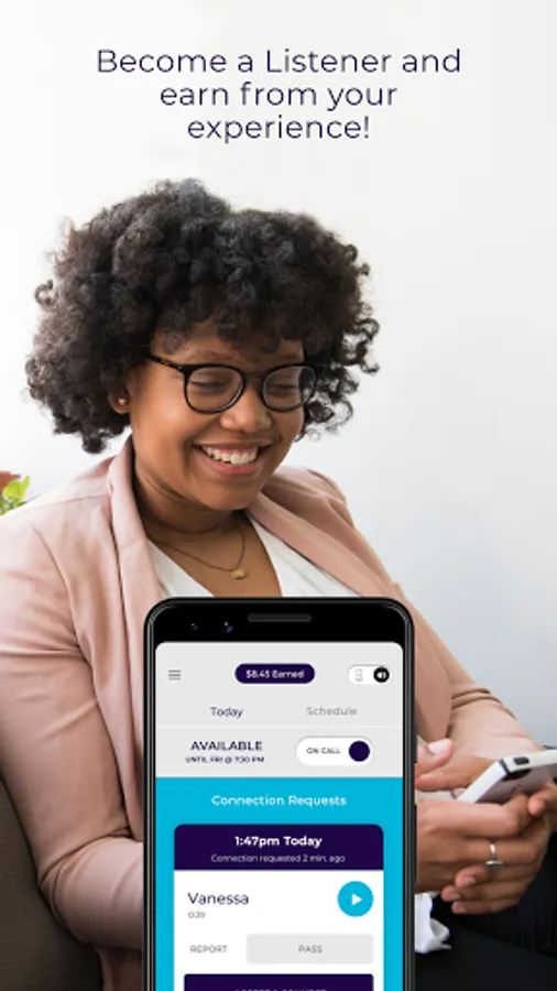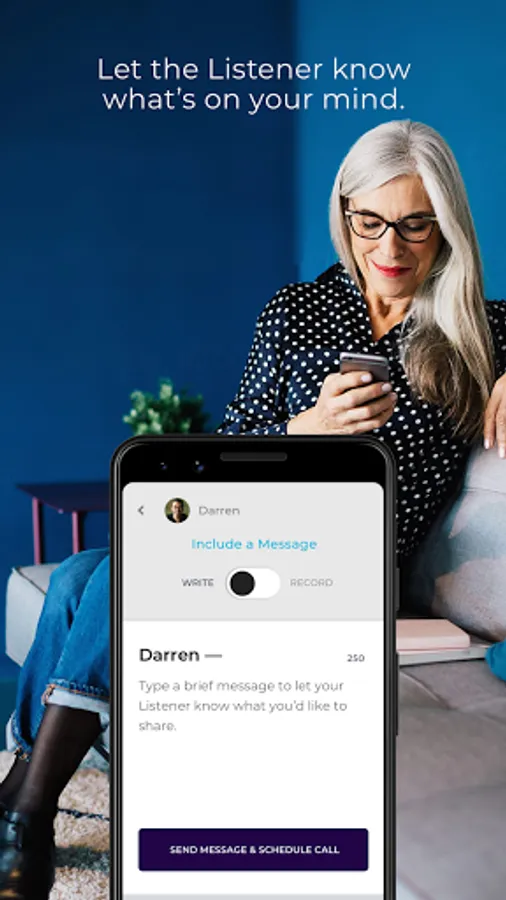 We believe everyone deserves to be heard, but we do not offer clinical mental health services. Our service is designed for times when you need a sounding board, confidante or friendly ear to share what’s on your mind. Our Listeners are trained only to provide support and do not provide any form of clinical counseling, coaching, care or diagnosis. They instead offer personal empathy and perspective, which we believe is incredibly valuable to those who need to share.